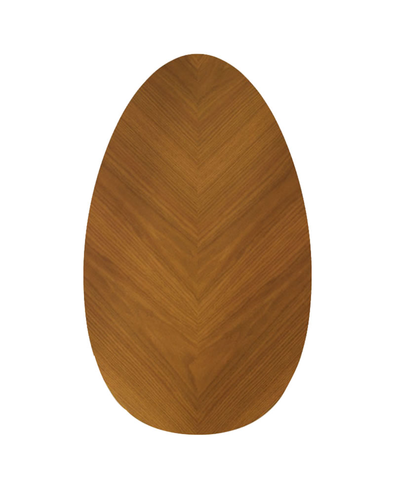 Seu tampo, quando laminado, é trabalhado em machetaria, replicando a textura e o desenho dos veios naturais da planta.