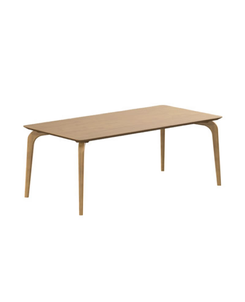 Os pés em madeira apoiam o tampo com suavidade e descrição, transmitindo a sensação de que o tampo está flutuando no ambiente.